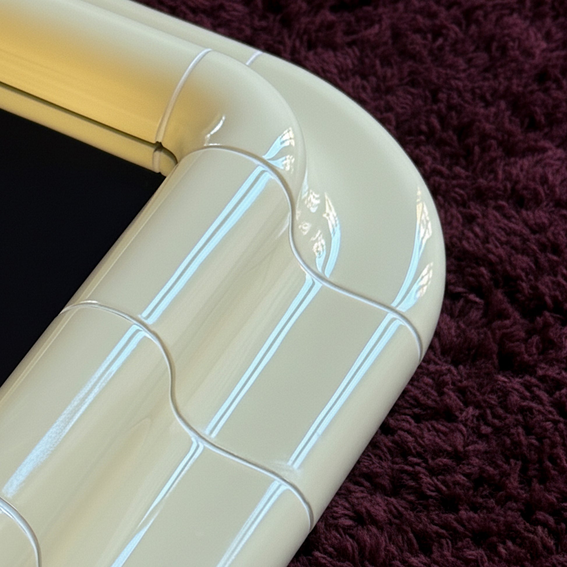 Finished in high gloss, Lola interacts constantly with light, adding depth and nuance as the surroundings change throughout the day. Whether used as a mirror or as a frame, the piece introduces character, naturally anchoring the space around it.
